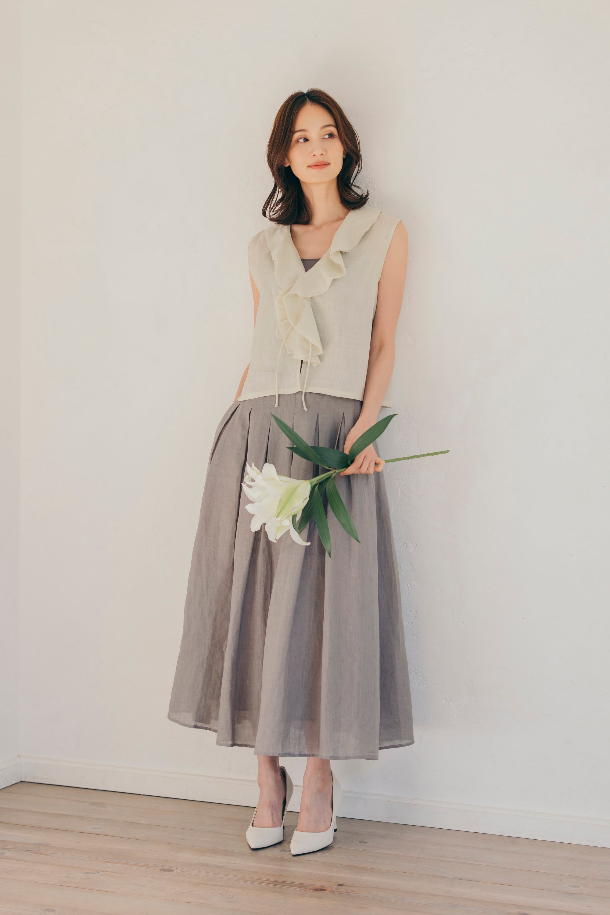 通常のお店でこういう形のワンピースを試着すると、可愛い過ぎて似合わなかったり、シルエットが思ってたイメージと違ってたりで諦めていました。