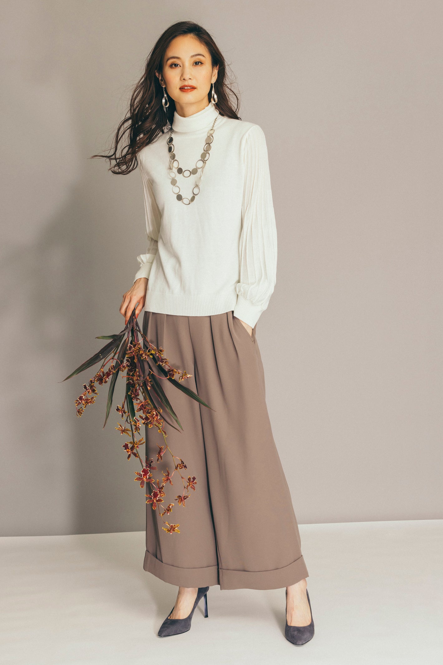 動くたびに美しい余韻が残る、存在感のある足元が美しいプリーツスカート