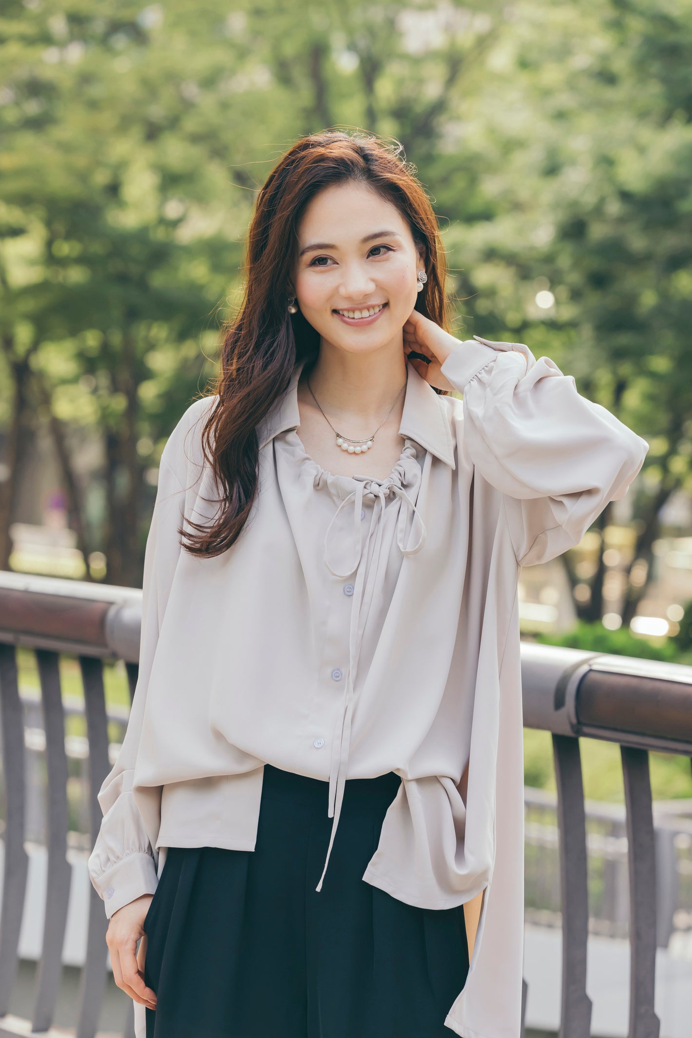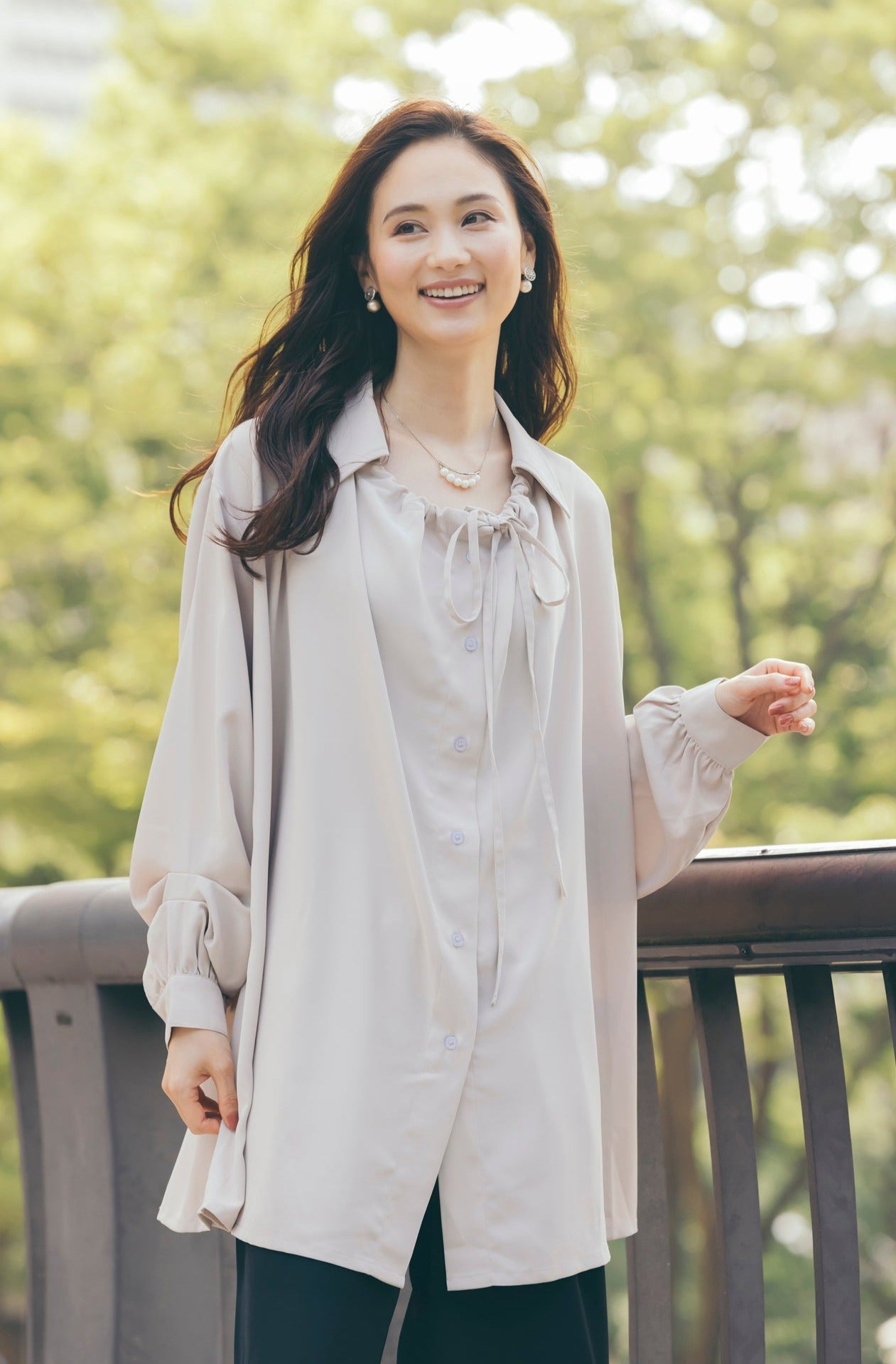リボン付きタックブラウス NS-156