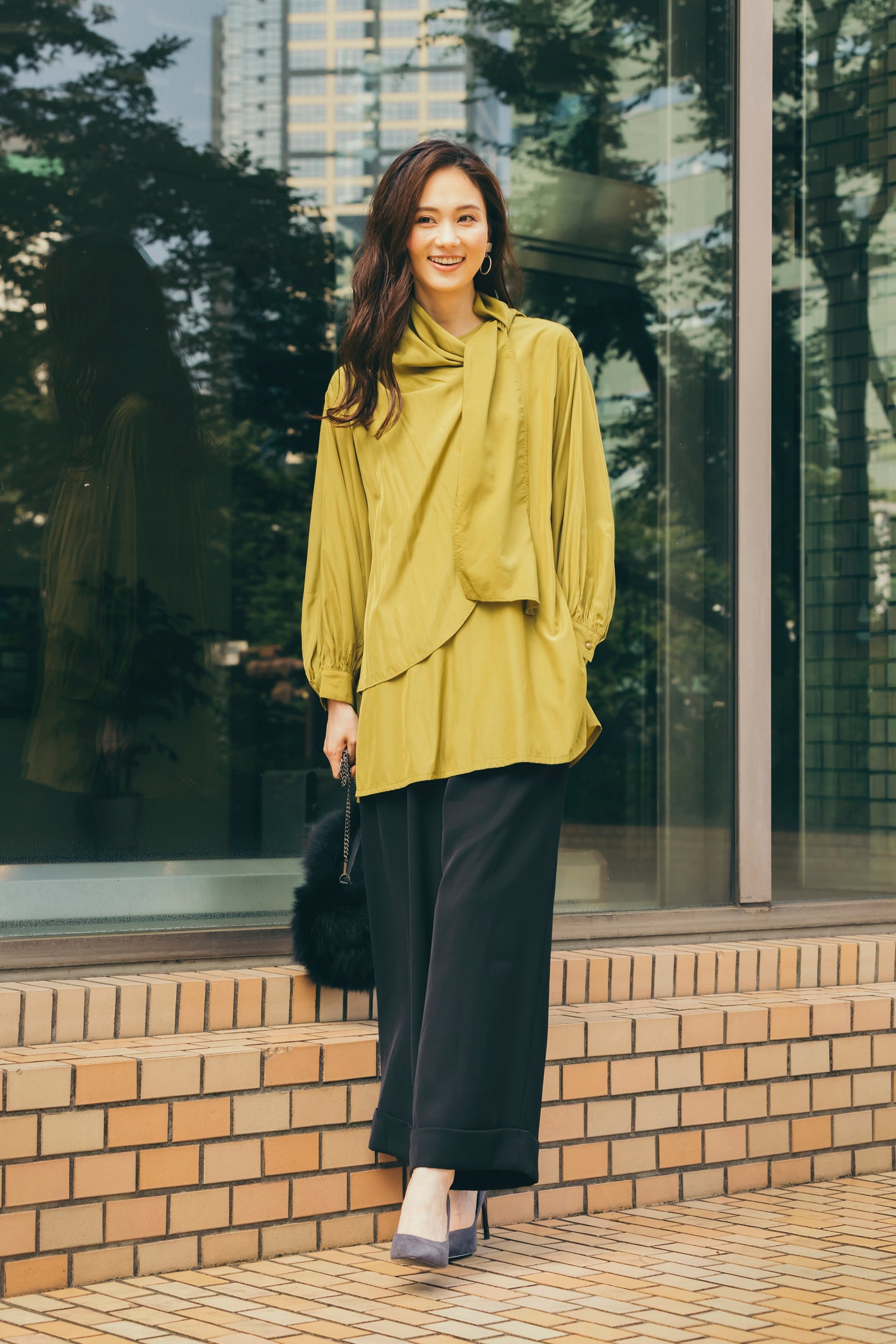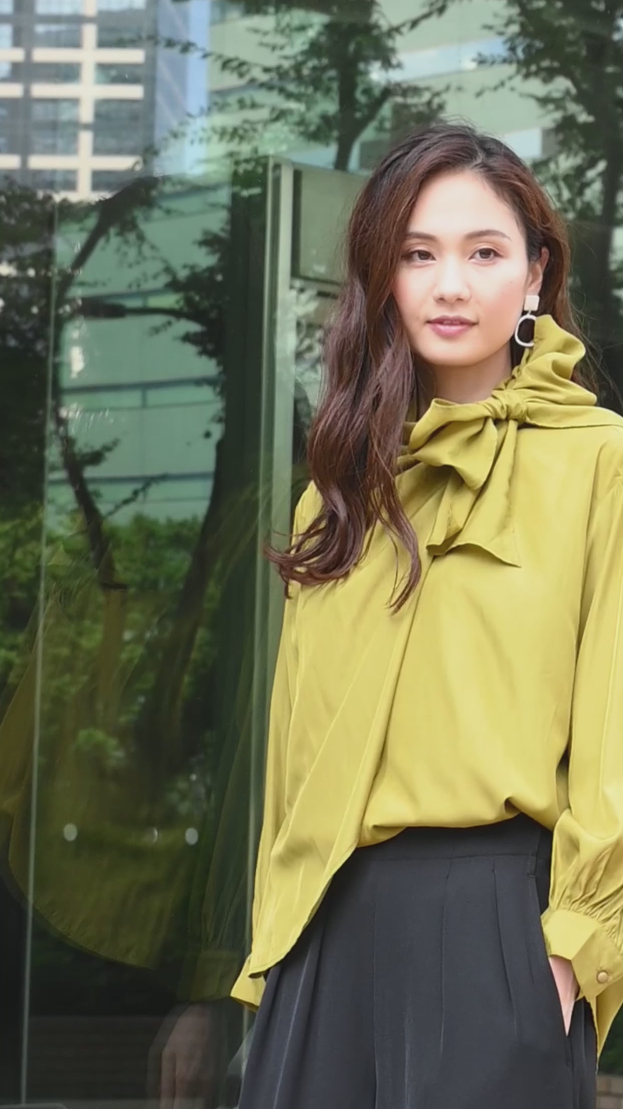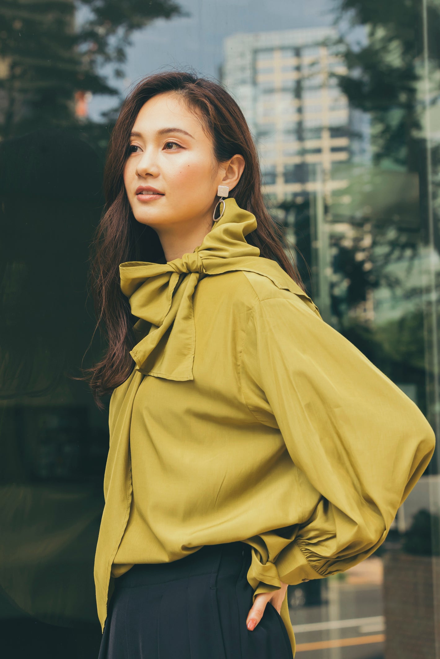クルミ釦リボンタイブラウス NS-352