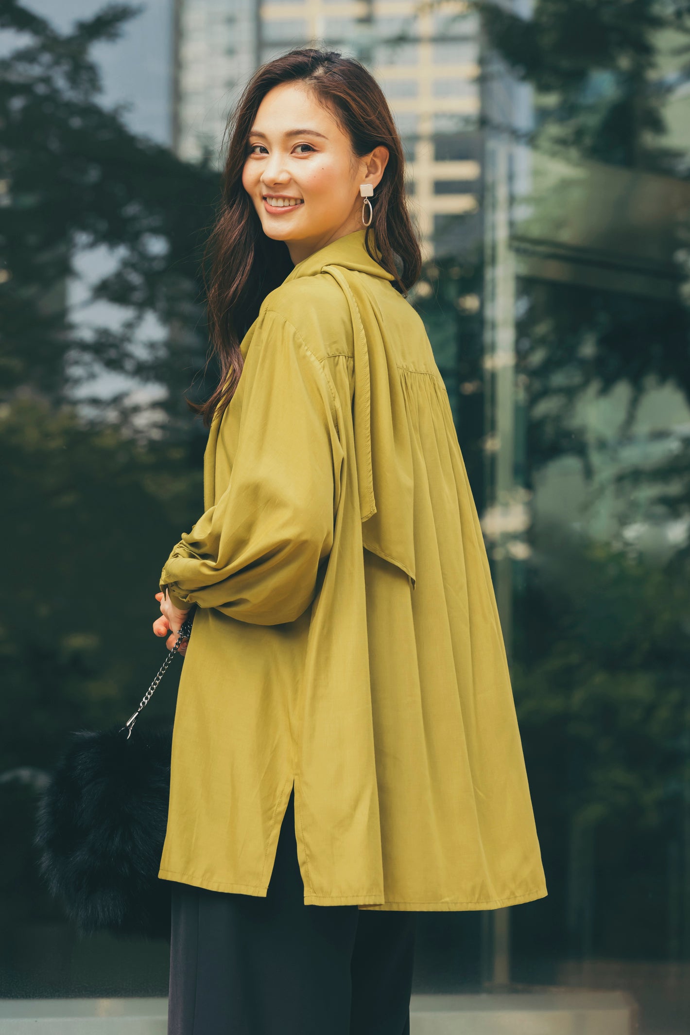 バックリボン麻混ブラウス NS-310